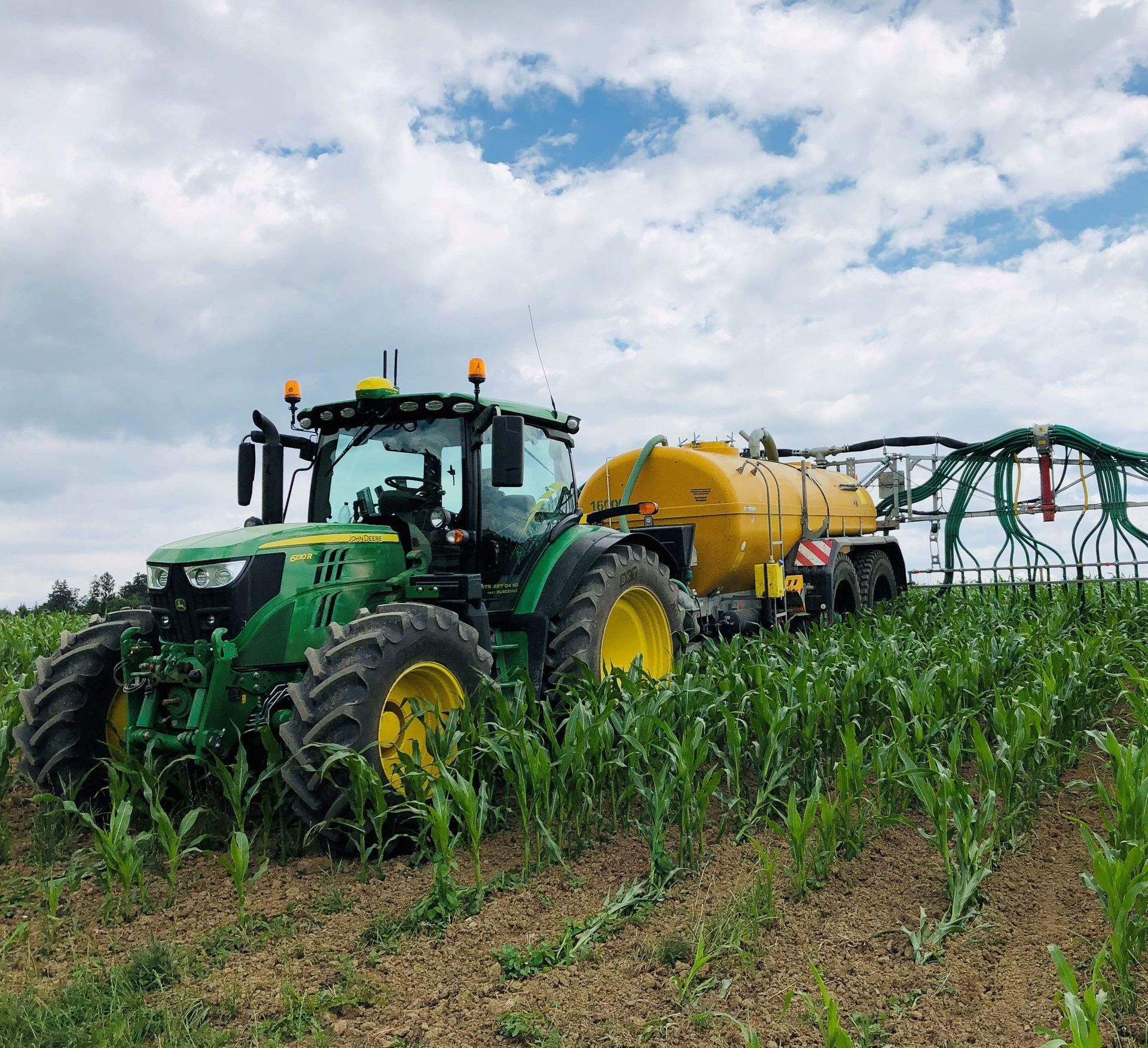 Afin d'épandre du liser/du digestat, elle est équipée avec roues et voies spéciales 2.25 mètres pour les cultures de maïs. La machine dispose d’essieux téléguidés pour les dévers. De plus, elle est idéale pour un apport tardif sans aucune brûlure.